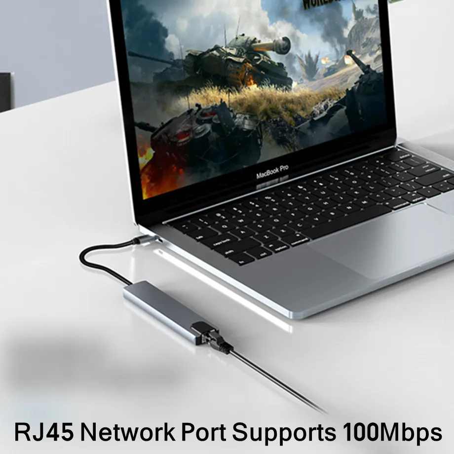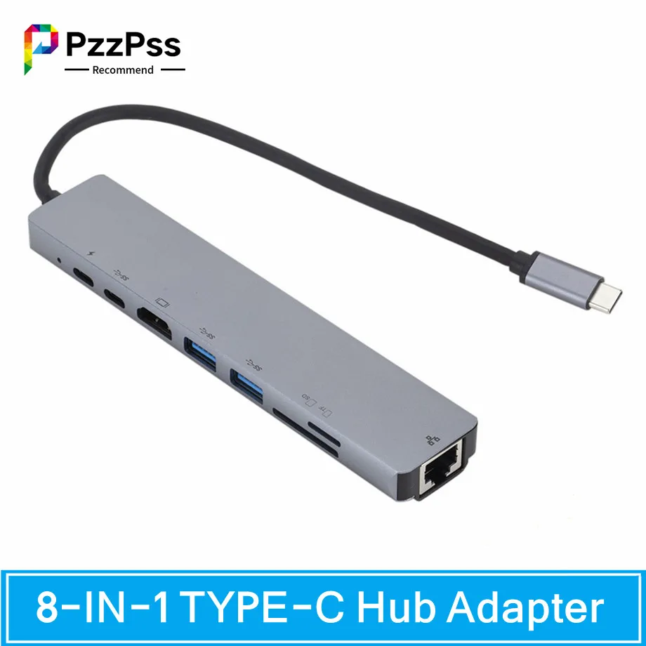 Comprar PzzPss-adaptador HDMI TYPE-C 3,1 a 4K, concentrador de USB-C 8 en 1, con lector de tarjetas SD/TF RJ45 de 100Mbps, para PC y ordenador portátil