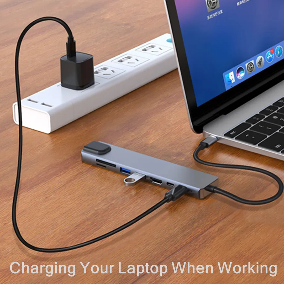 • Concentrador tipo C 8 en 1: este adaptador concentrador USB ofrece 8 puertos diferentes, lo que lo convierte en una herramienta versátil para todas sus necesidades de conectividad.