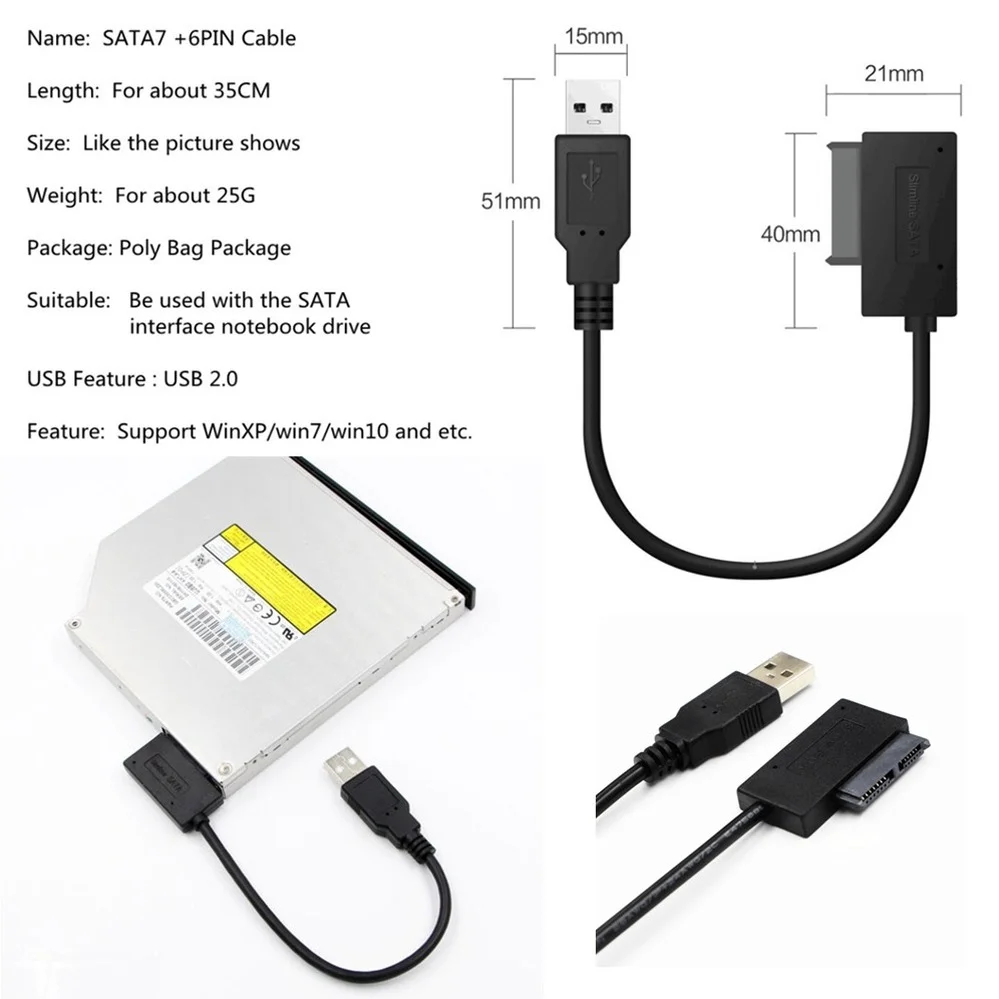 Versátil: para la unidad óptica SATA de segunda generación de Notebook 6P + 7p.