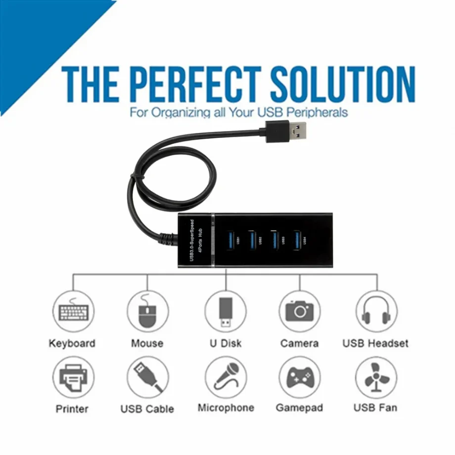 Descripción:1. 100% nuevo y de alta calidad sincronización de datos y carga 4 puertos USB 2,0 3,0 HUB2. La interfaz USB 2,0 múltiple admite plug and play, fácil de usar y transportar3. Soporta protección contra sobrecorriente e instantánea, protege los dispositivos conectados y a sí mismo4. Indicador LED para el Estado de Energía5. Admite Transmisión de súper velocidad USB3.0 (5Gbps), compatible con USB2.0/1,16. Diseño de estructura ultra delgada7. Unidad libre, compatible con Windows XP/Vista/7/8/10 y Mac OS, Linux. Nombre del artículo: HUB USB 2,0 3,0Puertos USB: USB 2,0X3 USB 3,0X1 o USB 3,0X4Tamaño: 104*37*24mmTasa de transferencia de Fecha: USB 3,0 hasta 5GbpsColor: negroEl concentrador no admite cargar el teléfono