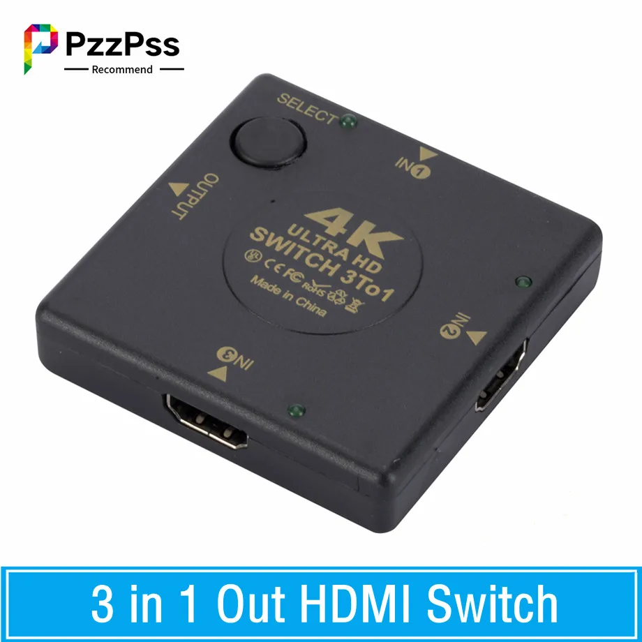 Comprar PzzPss-conmutador 4K Mini 3 en 1, conmutador compatible con HDMI, 1080P, 3 puertos, divisor de interruptor compatible con HDMI para DVD, HDTV, Xbox, PS3, PS4