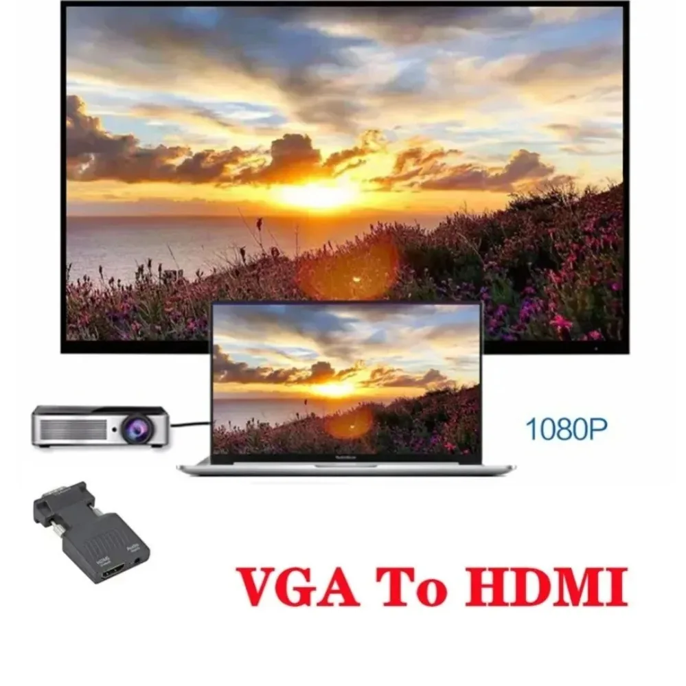 1. Se utiliza para convertir vídeo VGA y señal de audio analógica de 3,5mm en su ordenador a señal compatible con HDMI y mostrarla en la pantalla grande de la televisión de alta definición