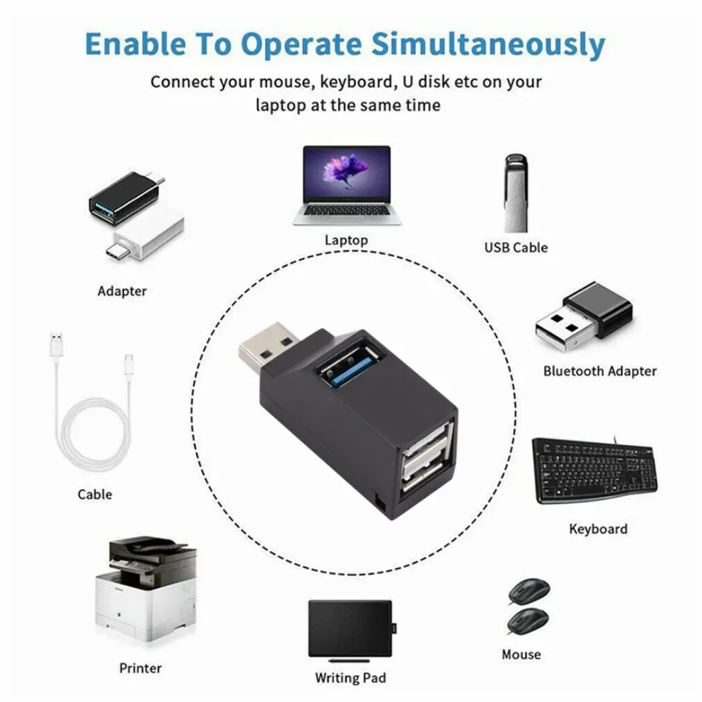 HUB giratorio USB, adecuado para expansión de Notebook, ligero y conveniente, súper compatible, transmisión de alta velocidad.
