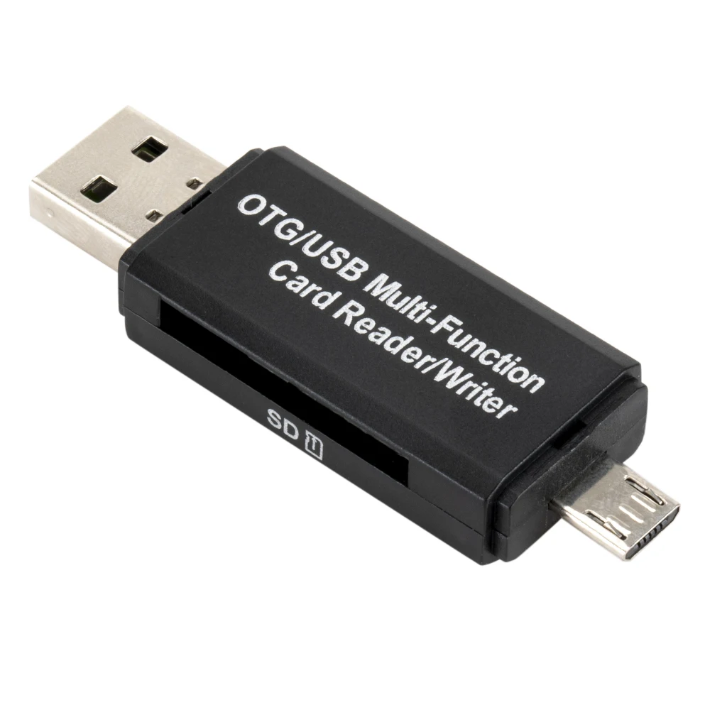 La combinación de enchufe USB 2,0 estándar (tipo A) y enchufe micro USB (tipo B) hace que el lector de tarjetas sea compatible con todas las tabletas y teléfonos inteligentes Android que admiten la función OTG.