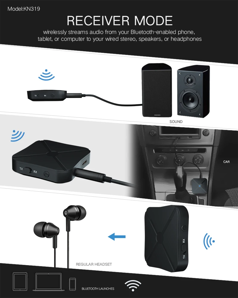1 x adaptador de transmisor/receptor de Audio Bluetooth (KN319)