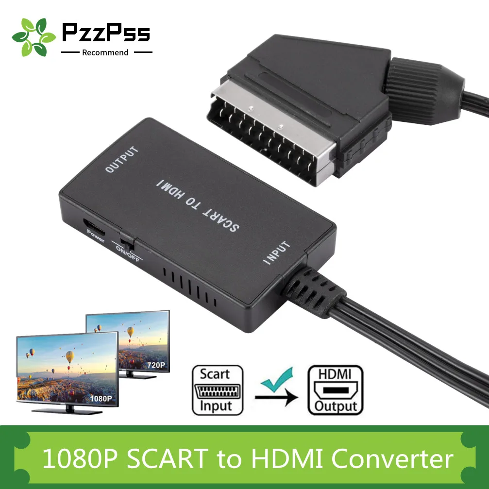 PzzPss SCART a HDMI Convertidor Con Cables Salida HDMI HD 720P / 1080P Interruptor Adaptador Convertidor DE Audio Video Para HDTV