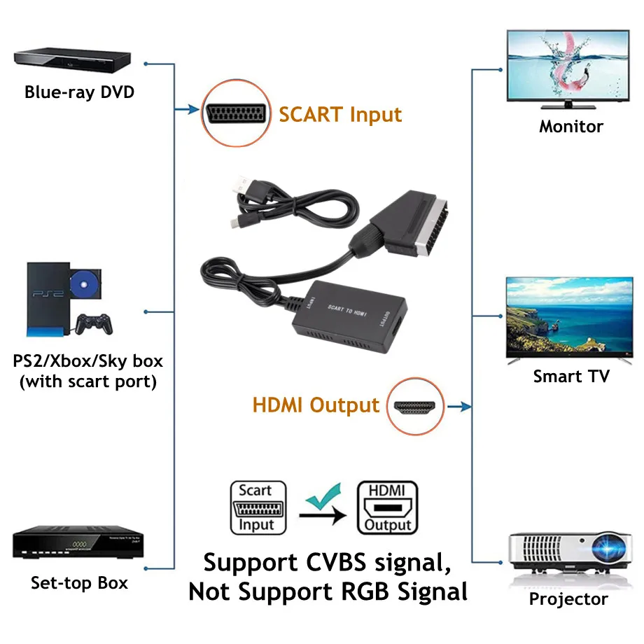 Después de conectarlo al televisor SCART, no convierte la señal 😒.