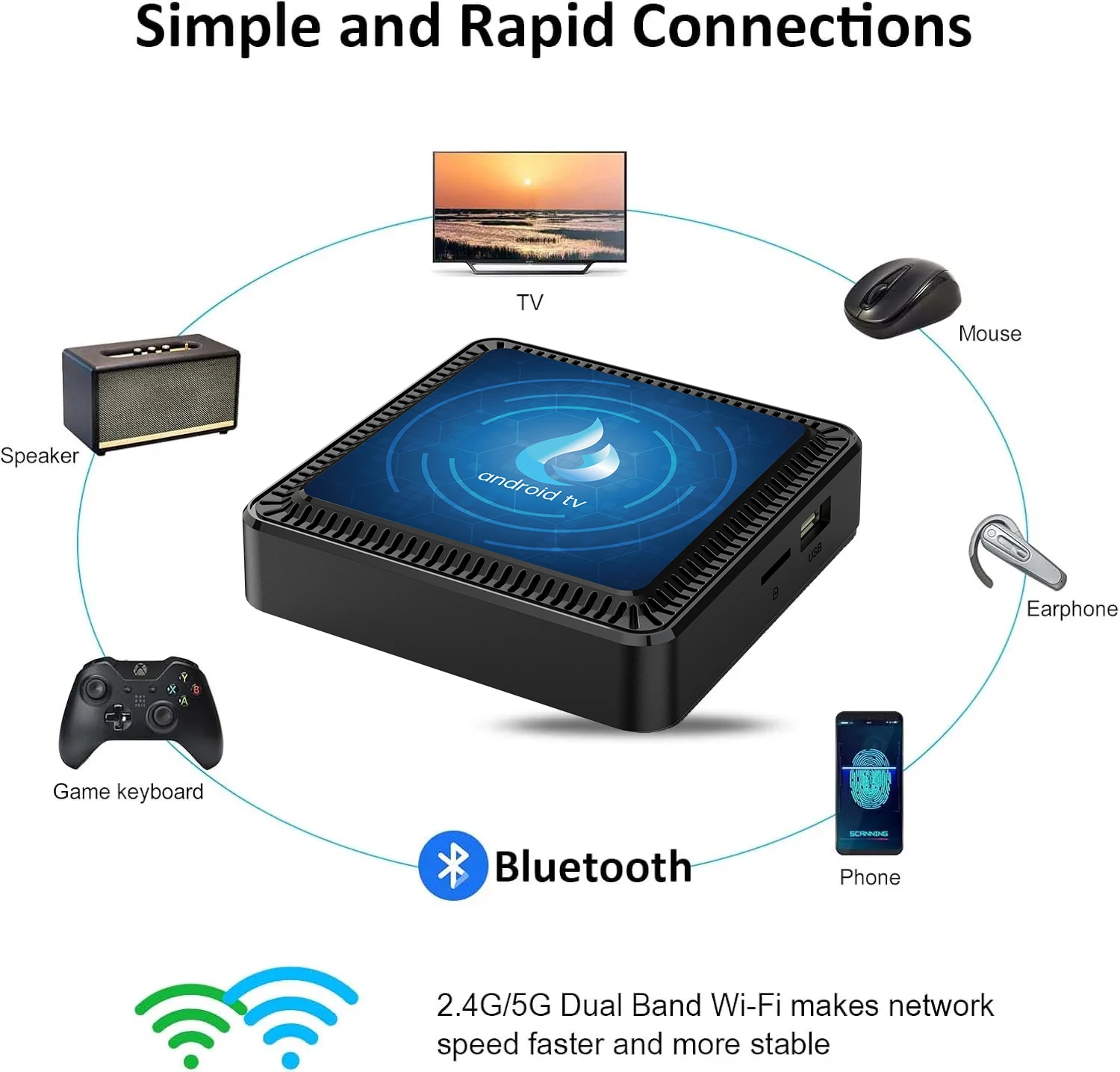 Q17 Smart TV Box 5G Wifi Android 14 TV Box Quad Core Allwinner H313 64GB 128GB Cocodificador Asistente de Google Netflix Reproductor multimedia