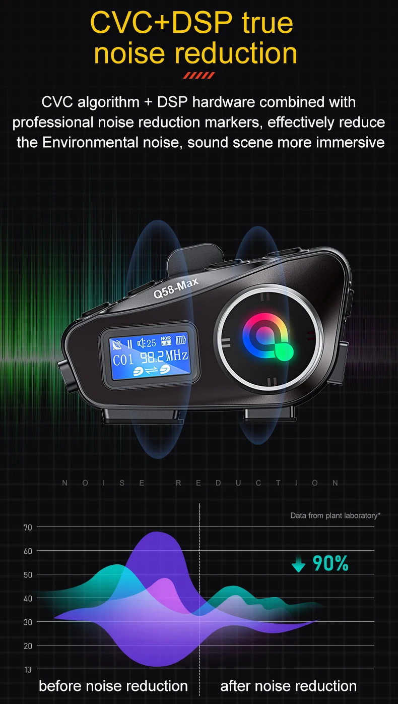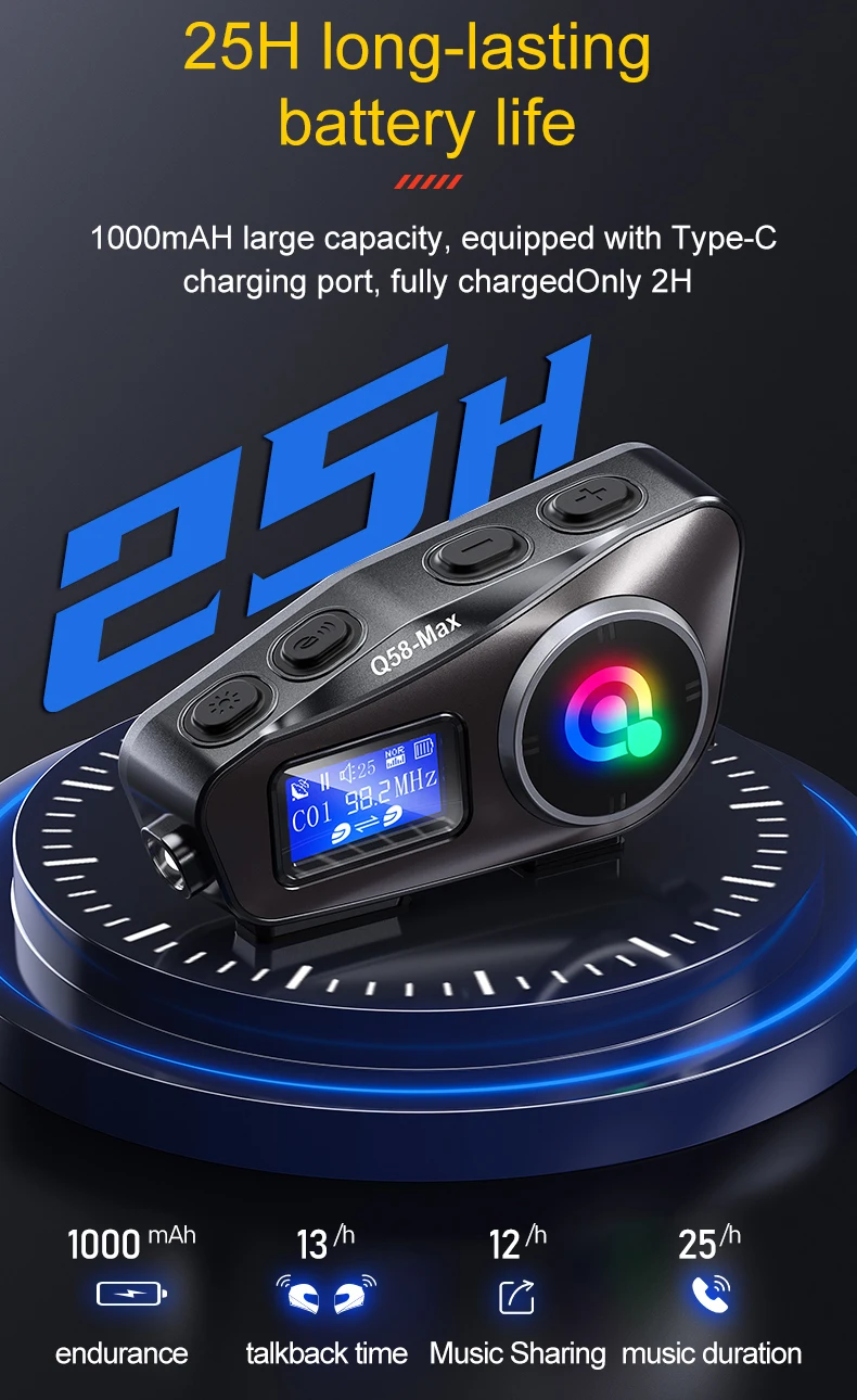• Conectividad Bluetooth:Experimente una comunicación perfecta con el intercomunicador Bluetooth DE LOS Q58-MAX auriculares para casco de motocicleta, lo que garantiza conversaciones claras e ininterrumpidas de hasta 500m de distancia.