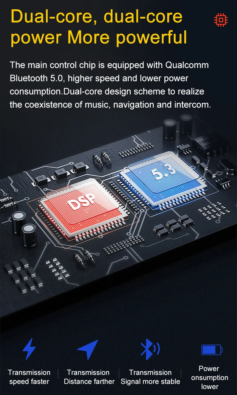 Capacidad de multiprocesamiento de audio DSP dual; escuchar música mientras intercomunicador de navegación, hablar; calidad de sonido clara para una experiencia de audio inmersiva