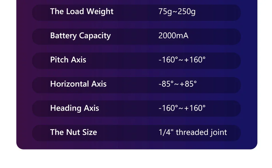 • Soporte de teléfono de mano 3 ejes :El soporte de teléfono de mano QAML F8 está diseñado con un diseño de 3 ejes, lo que garantiza una estabilización óptima para grabaciones de video sin oscilaciones.