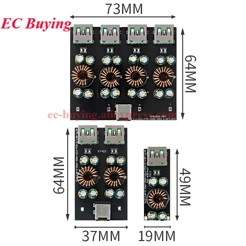 4.El puerto tipo C admite protocolo PD de hasta 20 V/3 A cuando el voltaje de suministro es superior a 21 V.El módulo es relativamente pequeño, por lo que garantiza una ventilación y disipación de calor adecuadas cuando se usa con computadoras portátiles equipadas con carga PD.