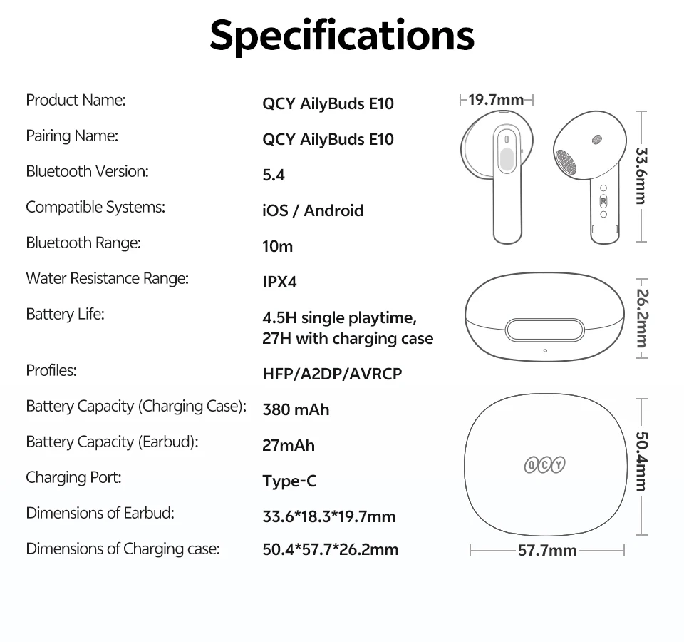 QCY AilyBuds E10 Wireless Earphones Hi-Res Audio with LDAC Codec Headphones Bluetooth 5.4 Spatial Sound TWS Earbuds 13mm Driver