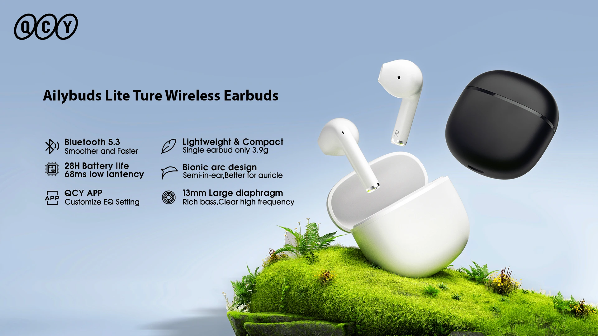 QCY Ailybuds Lite Wireless Earphones Bluetooth 5.3 TWS Earbuds Semi in-Ear Gaming Headphone Hifi Sound Headsets ENC HD Call 28H