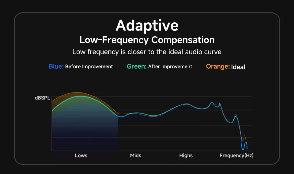 Nuestra tecnología HiFi 5 DSP ofrece procesamiento de audio de primer nivel.Los auriculares inalámbricos se adaptarán automáticamente a su canal auditivo y estado de uso. Con ajuste dinámico de baja frecuencia, lo que le permitirá disfrutar de ricos detalles de sonido.