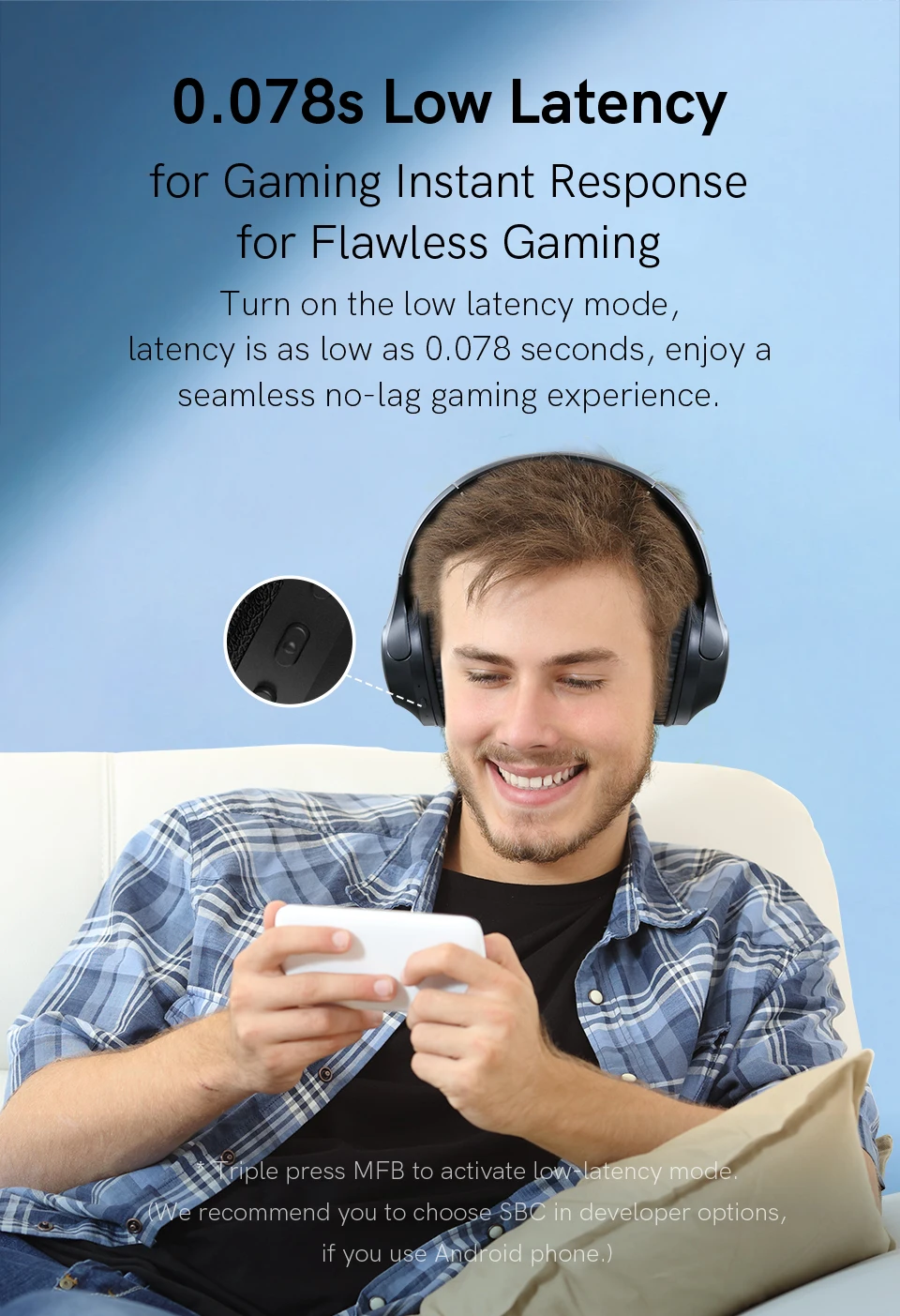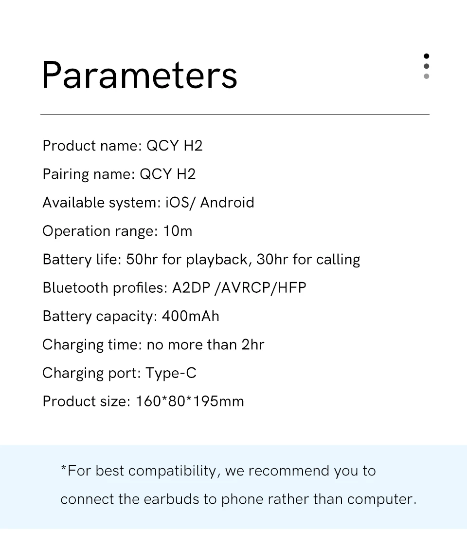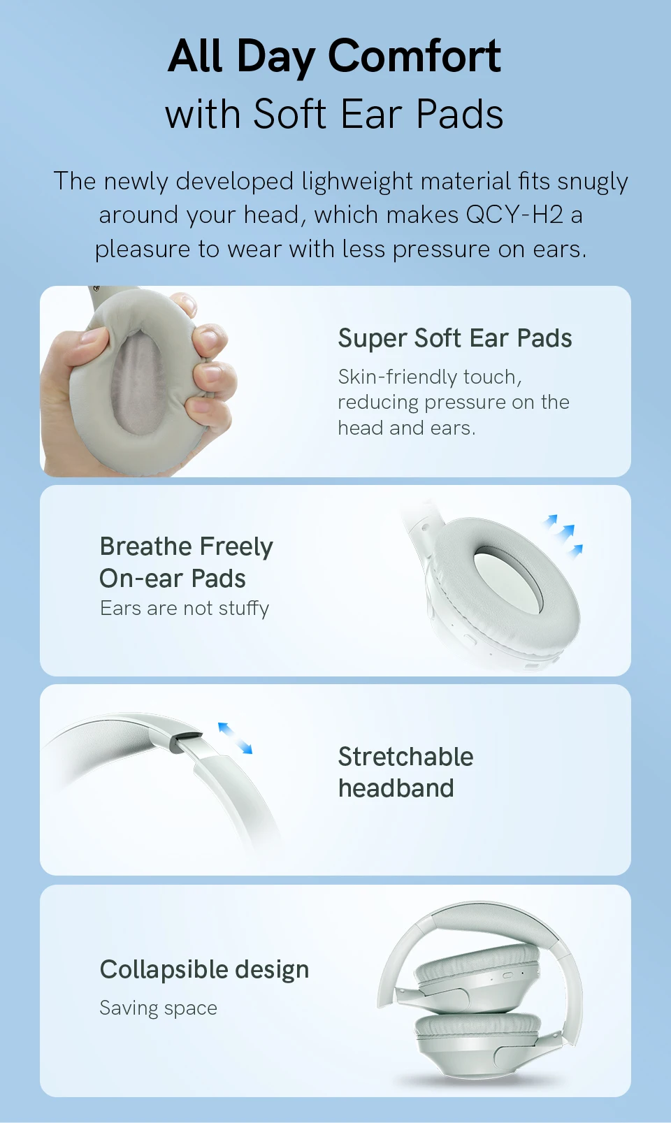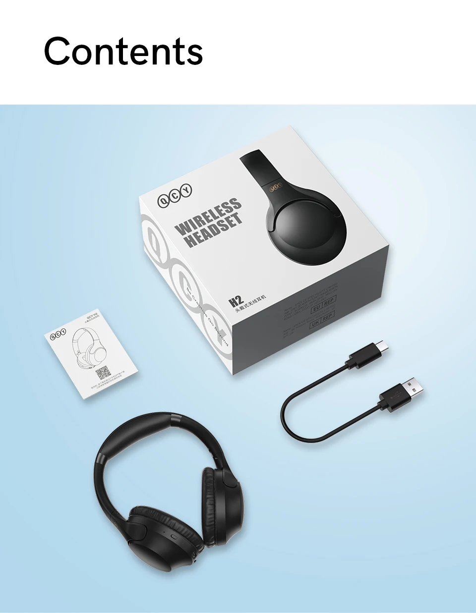 Gracias a hasta 60 horas de duración de la batería, QCY H2 ofrece una semana de Reproducción después de una recarga, si escucha música 8 horas por día.