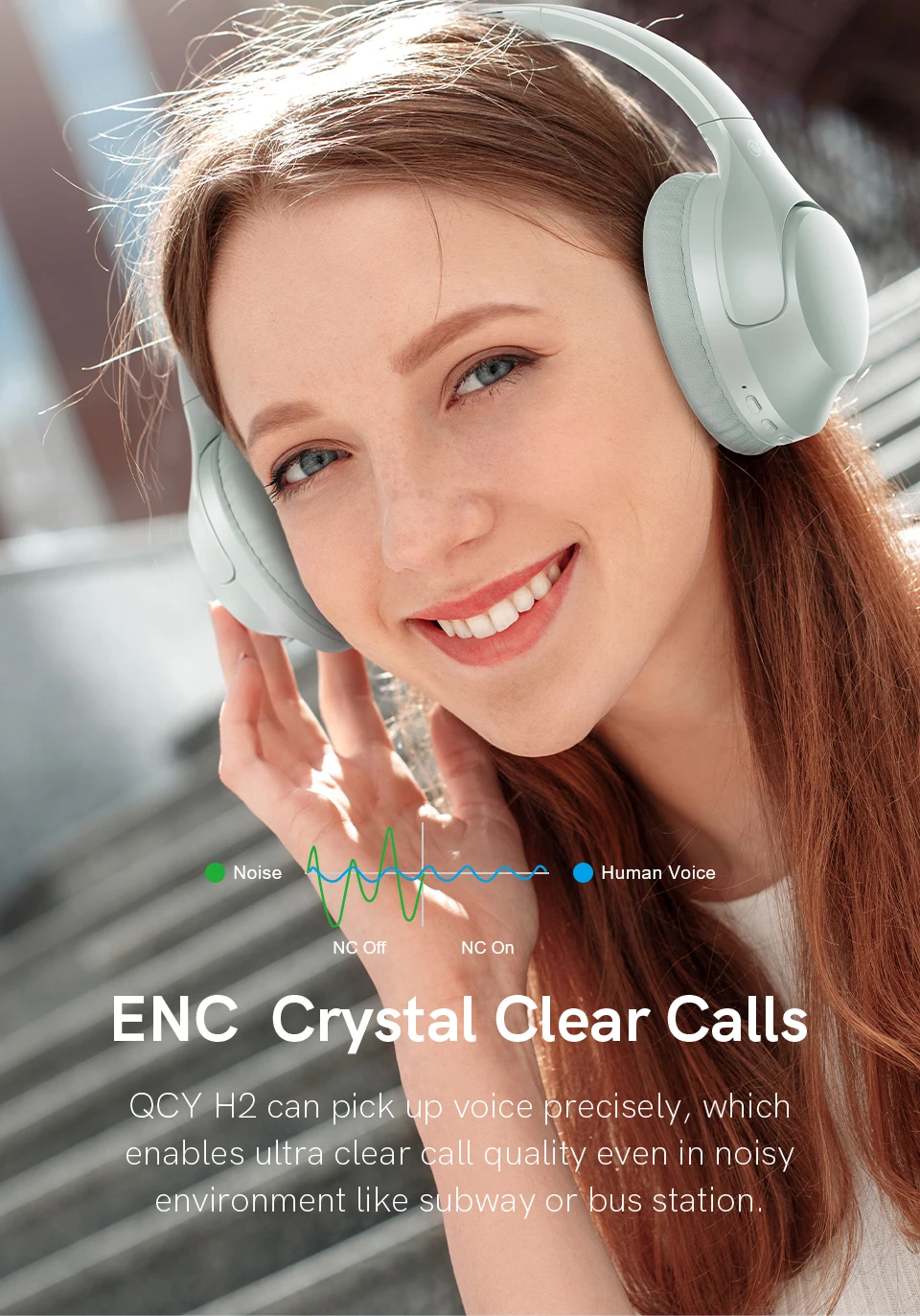 QCY H2 puede captar la voz con precisión, lo que permite una calidad de llamada ultra clara incluso en entornos ruidosos como el metro o la estación de autobuses.