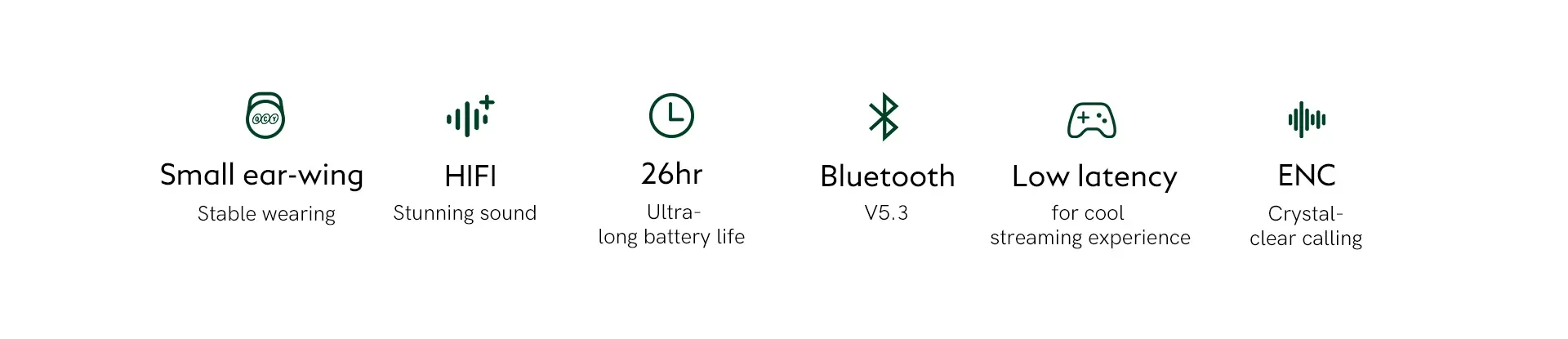 Una recarga ofrece 7,5 horas de reproducción mientras que el estuche de carga lo extiende a 26 horas.¡Sigue reproducción de música!