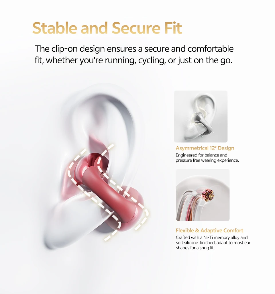 - Diseño de clip de oreja abierta cómodo y seguro;