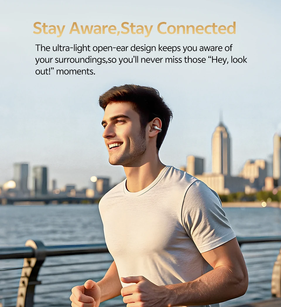 El diseño ultraligero de oreja abierta lo mantiene al tanto de su entorno, para que nunca se pierda esos "¡Hola, mire hacia afuera!"momentos.