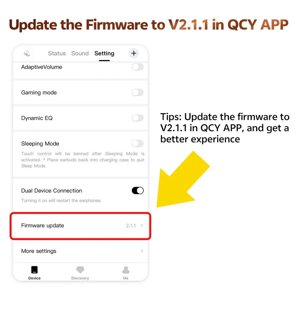 Consejos: actualice el firmware a V2.1.1 en la aplicación QCY y obtenga una mejor experiencia.