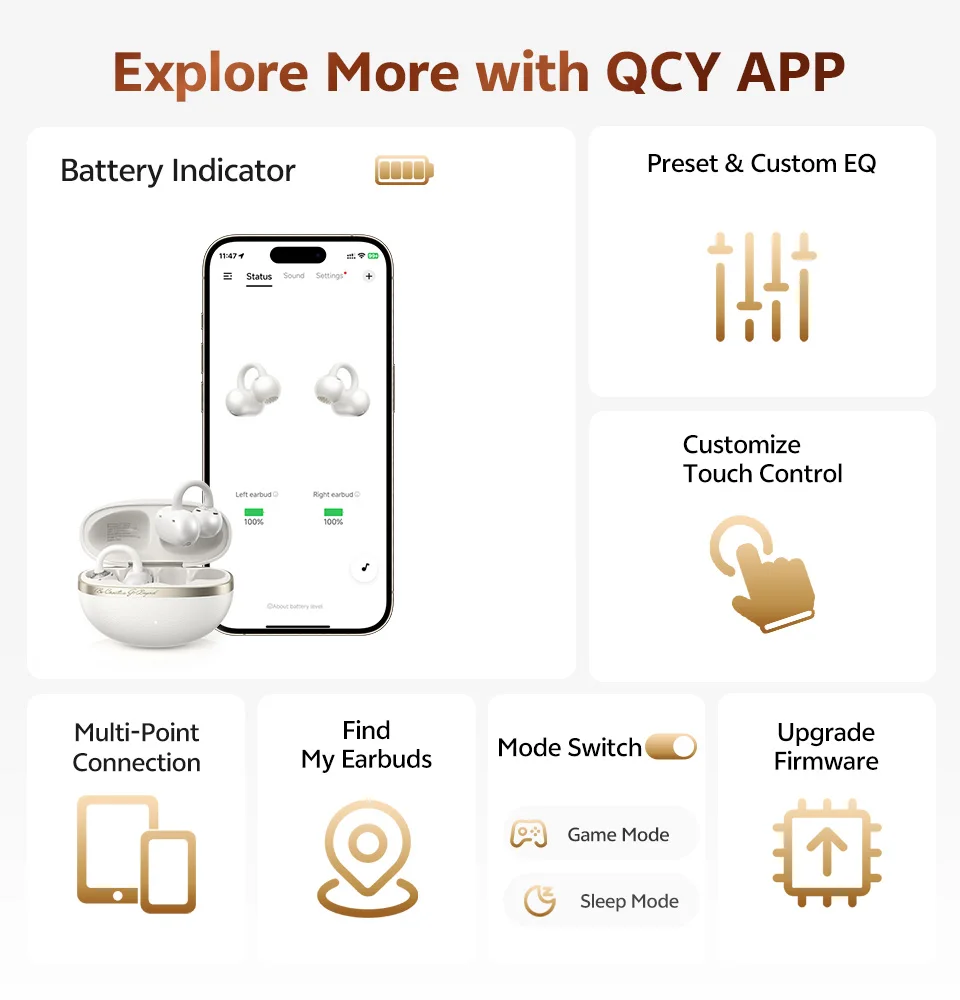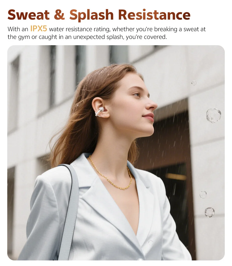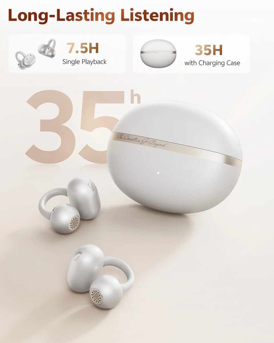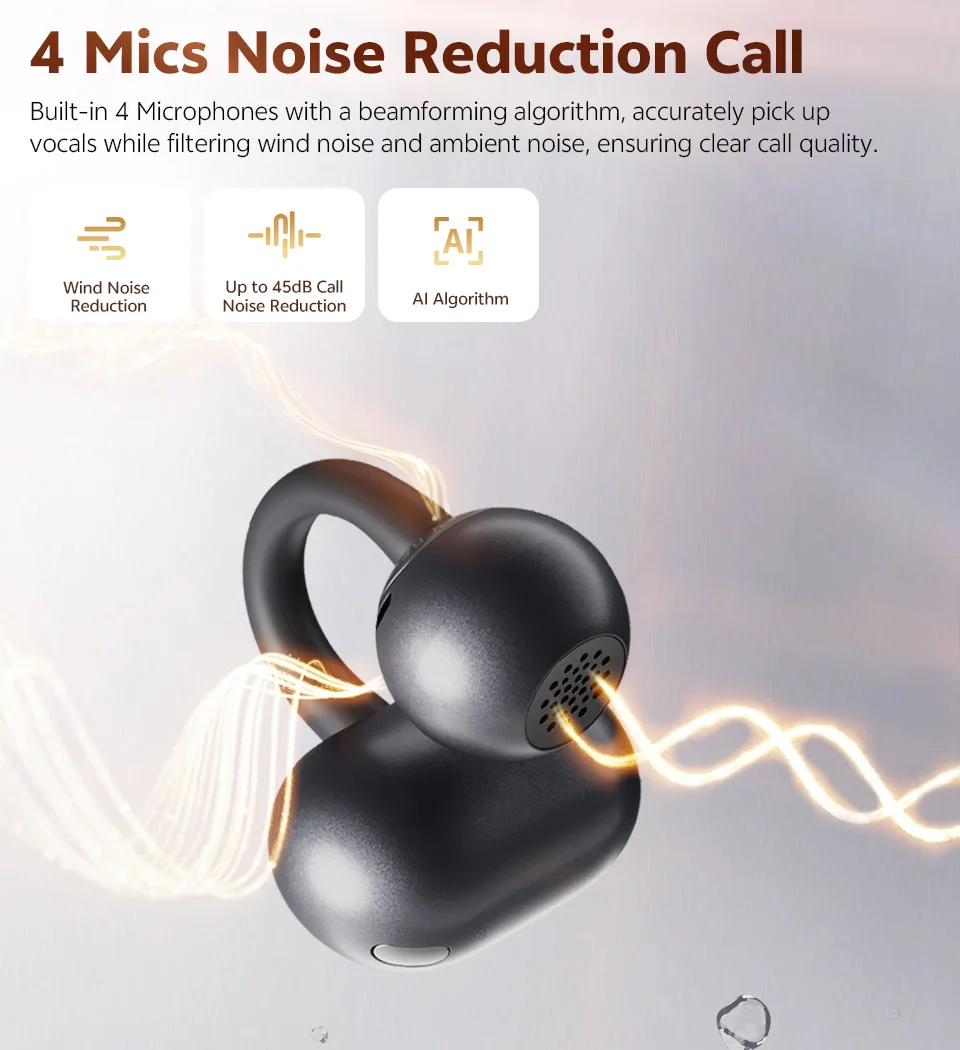 QCY Crossky C50 Auriculares inalámbricos de oído abierto Bluetooth 6.0 Auriculares cómodos con clip 4 micrófonos AI Clear Call Low Boost Auriculares 35H Tiempo de reproducción para deportes correr