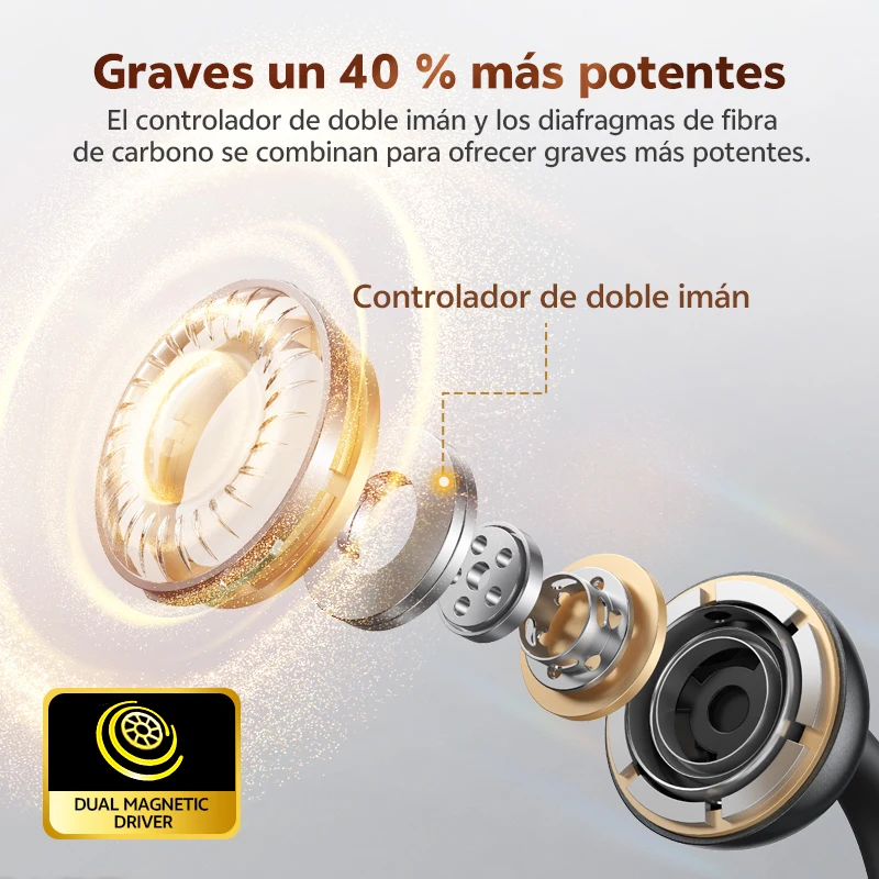 - Controlador de doble imán con diafragmas de fibra de carbono;
