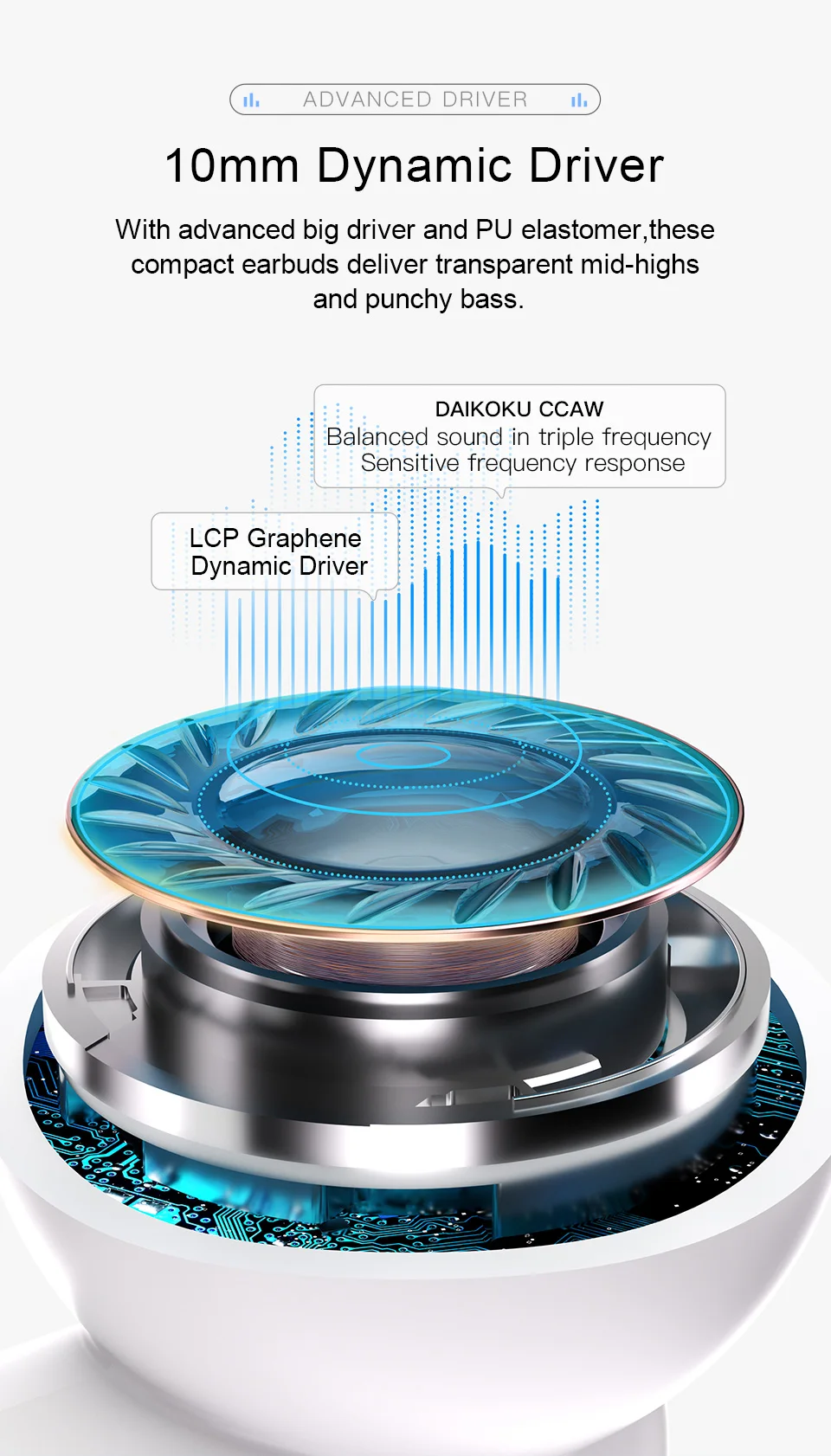 [Controlador dinámico de grafeno LCP de 10mm]-Calidad HIFI, ofrece un sonido impresionante.