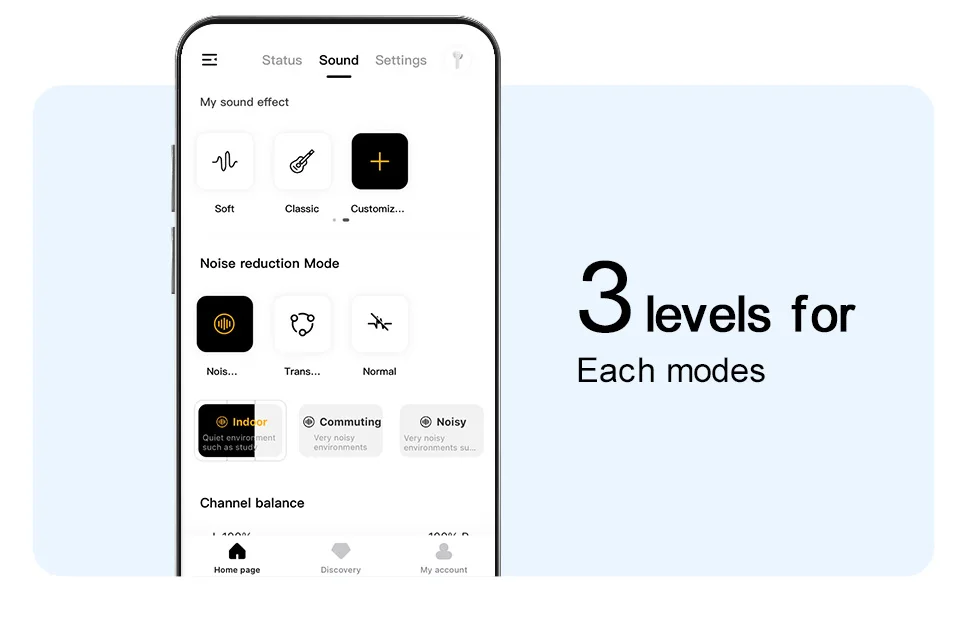 Control de volumen y voces potenciadas, escuche el sonido ambiental claramente mientras disfruta de la música. Y hay 6 niveles para su elección.