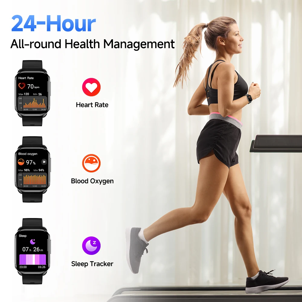 QCY Watch GS Bluetooth Call Smartwatch 2,02 ''Pantalla táctil completa Fitness Tracker para más de 100 modos deportivos Monitor DE SALUD Reloj inteligenteFunciones:1. Pantalla TFT HD completamente táctil de 2,02"2. Bluetooth 5,2 Llamadas Reloj inteligente, responder/hacer llamadas telefónicas.3. Más de 100 Esferas de reloj en línea: DIY y personalice la esfera de su reloj, cargue sus propias fotos en la esfera del reloj4. Más de 100 modos deportivos: correr, ciclismo, baloncesto, fútbol, escalada, yoga y otros deportes al aire libre y de Interior;5. Reloj de seguimiento de actividad física: registra tu frecuencia cardíaca y pasos, calorías quemadas y distancia a lo largo del día y sincronízalo con la aplicación para ayudarte a hacer ejercicio científicamente.6. Monitoreo de la salud: Monitoreo inteligente de frecuencia cardíaca las 24 horas/Oxígeno en sangre/Monitoreo del sueño/Monitor de estrés/Rastreador de estado de ánimo y Monitoreo de la salud de las mujeres7. Resistente IPX8 al agua: no necesita quitárselo al lavarse las manos;8. De la batería Duración: cuando está completamente cargada, se puede utilizar durante aproximadamente 4 días en modo de uso diario, aproximadamente 10 días en modo de uso básico.9. Soporta carga magnética;10. 55,4G Ligero, cómodo.11. Pantalla del reloj: 12/24H12. Encuentra más en la aplicación QCYMúltiples características: Frecuencia respiratoria, función de tiempo, recordatorio de sedentarismo, reproducción de música Bluetooth, juego, encontrar Teléfono, recordatorio de Mensajes/llamadas, notificaciones inteligentes, linterna, pronóstico del tiempo, reloj despertador, levantar la muñeca, agitar para tomar fotos, cámara remota, cronómetro, SOS, calculadora, etc.Sistema compatible: IOS 13,0 o versión superior y Android 8,0 o versión superior.Idiomas compatibles:Inglés, chino simplificado, japonés, coreano, ruso, turco, polaco, árabe, portugués, español, indonesio, checo, persa, hebreo, griego malayo, chino tradicional, holandés, alemán, francés, Italiano (conecta el reloj a la aplicación QCY y actualiza el Firmware)Lista de embalaje1 * reloj inteligente (Incluye correa estándar),1 * Base de carga magnética1 * Manual de usuario