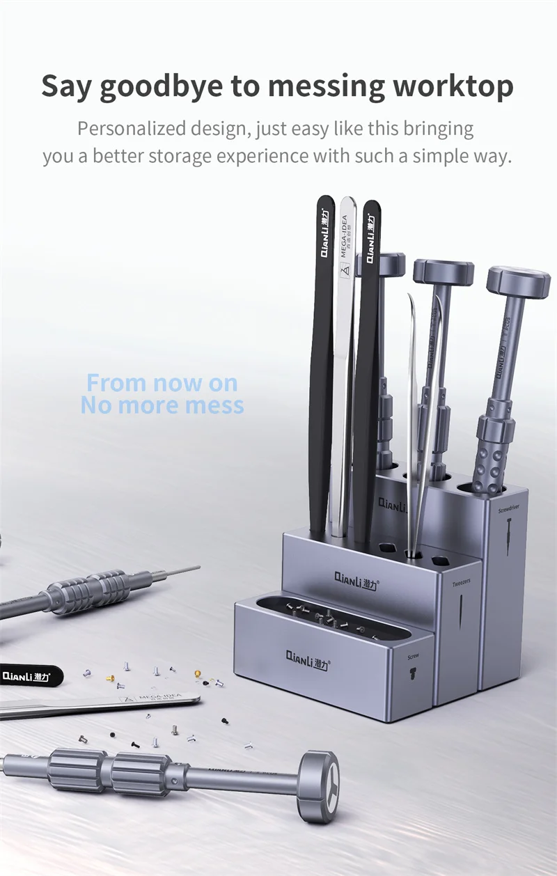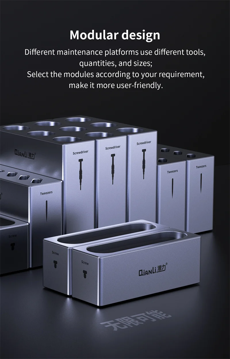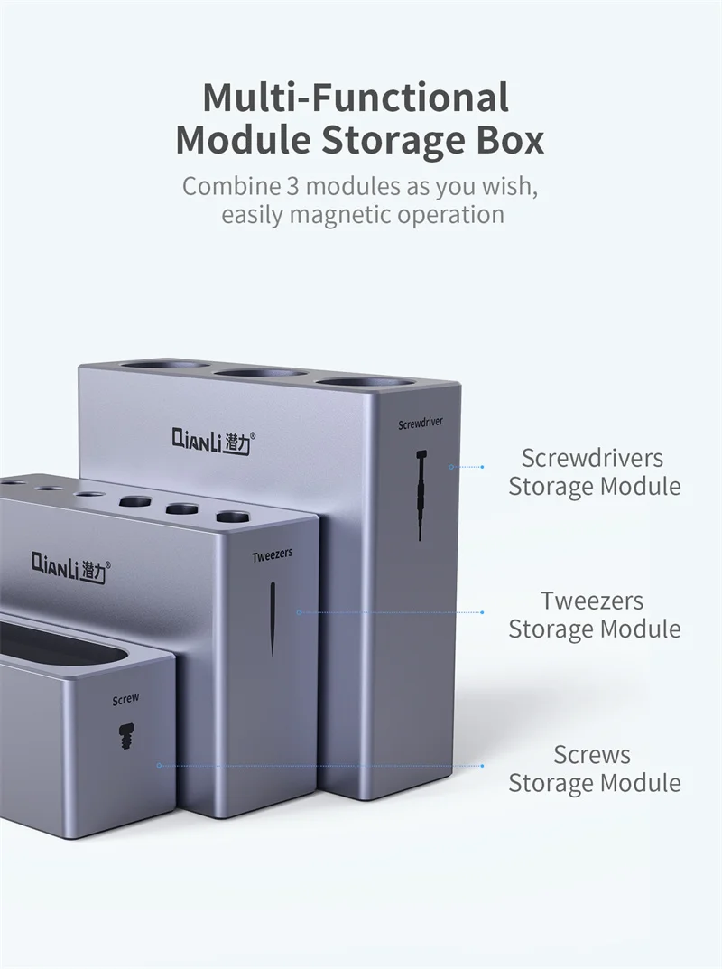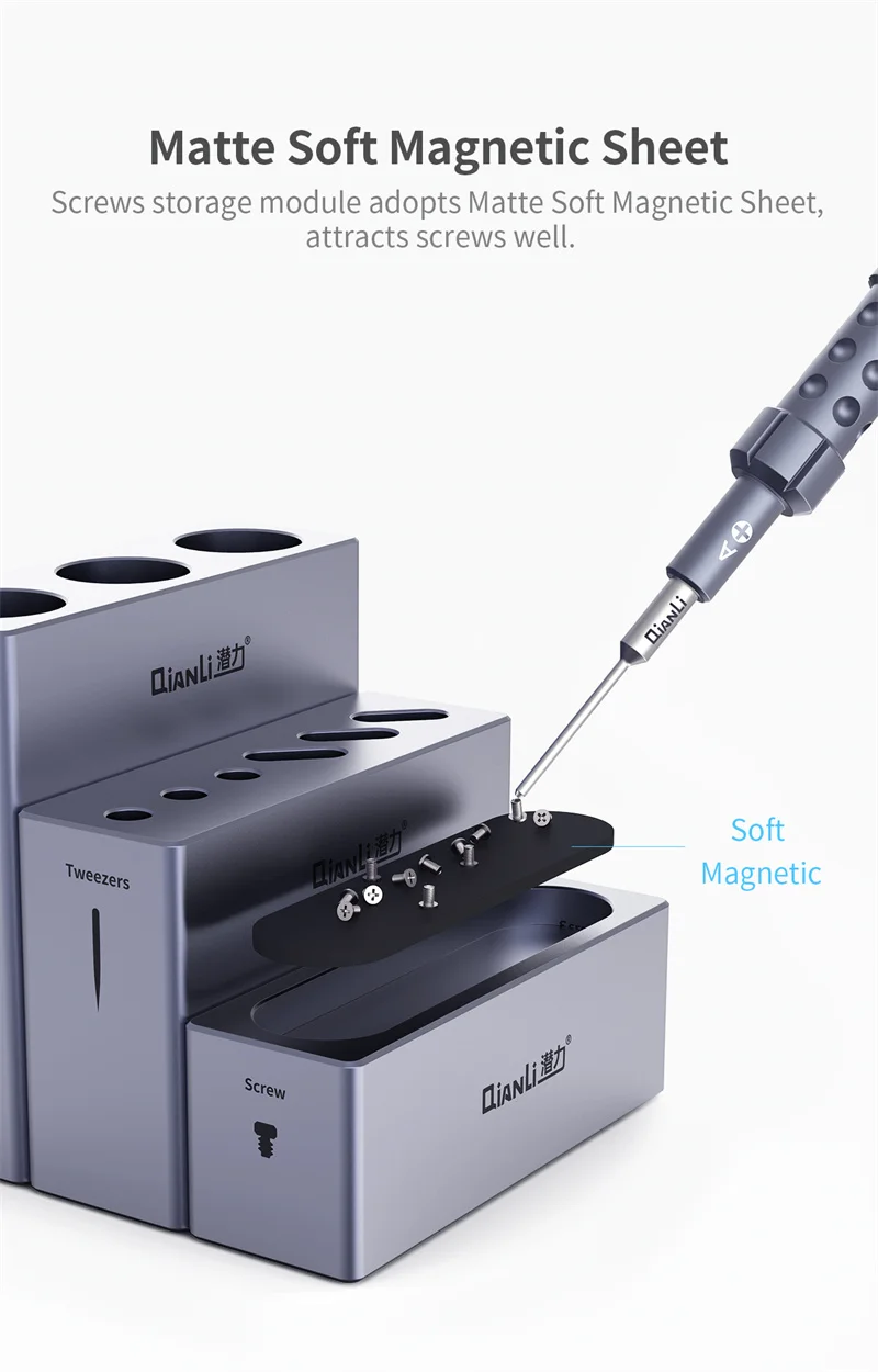QIANLI iCube caja de almacenamiento modular aleación de aluminio reparación de teléfonos móviles pinzas destornillador tornillo colección de piezas organizador