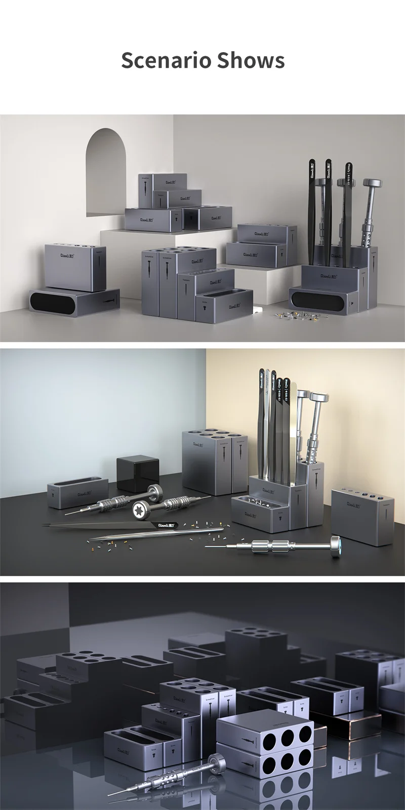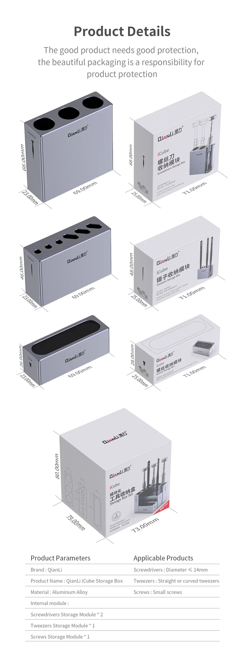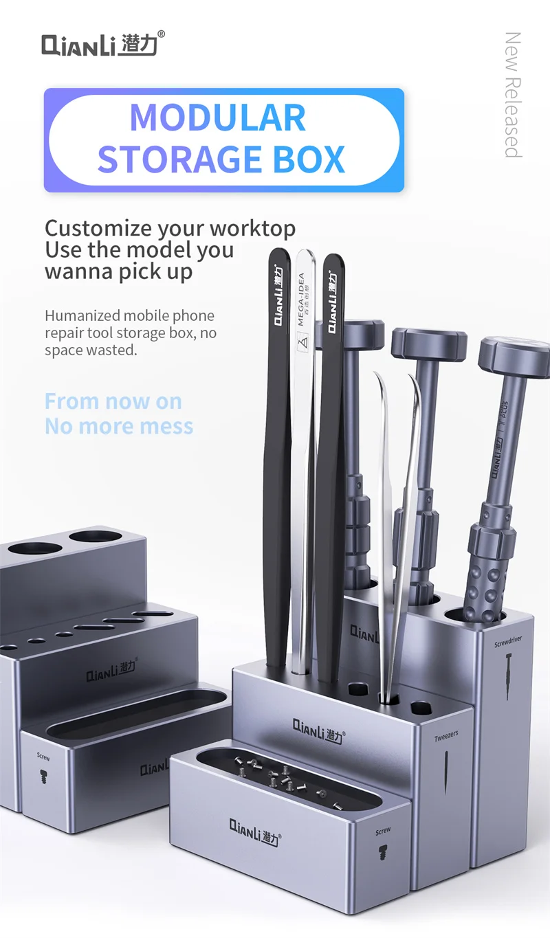 QIANLI iCube caja de almacenamiento modular aleación de aluminio reparación de teléfonos móviles pinzas destornillador tornillo colección de piezas organizador