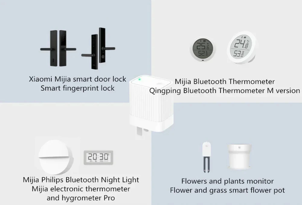 Mijia BT Gateway Buen compañero del subdispositivoQingping BT Gateway es compatible con todos los dispositivos Mijia BT Gateways.Agréguelos a la misma cuenta del medidor, solo para estar dentro del rango de transmisión de la señal BT, se conectará automáticamente, lo que a su vez le permitirá ver de forma remota desde la aplicación móvil Mijia el estado, datos históricos o notificaciones de eventos, configuraciones e inteligencia de otros dispositivos Vinculación y otras operaciones.