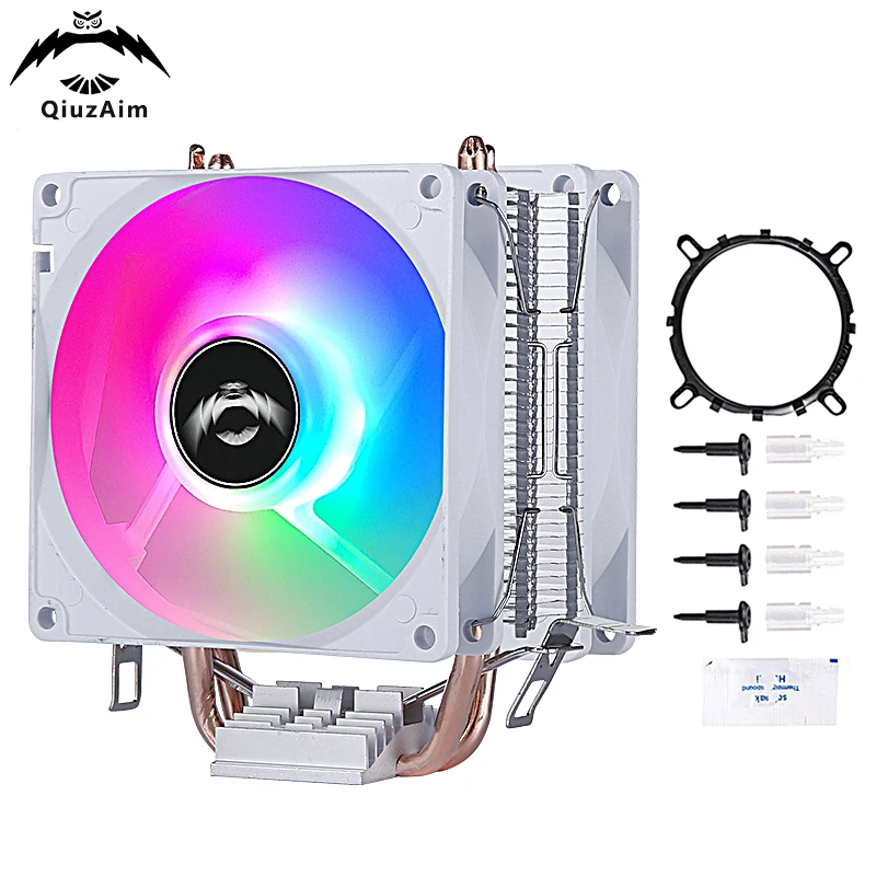 Comprar QiuzAim Cpu ventilador enfriador tipo torre radiador PC 2 tubo de calor am4 am5 amd procesador refrigerado por aire instalación LGA775 115x 1200 1700 1366