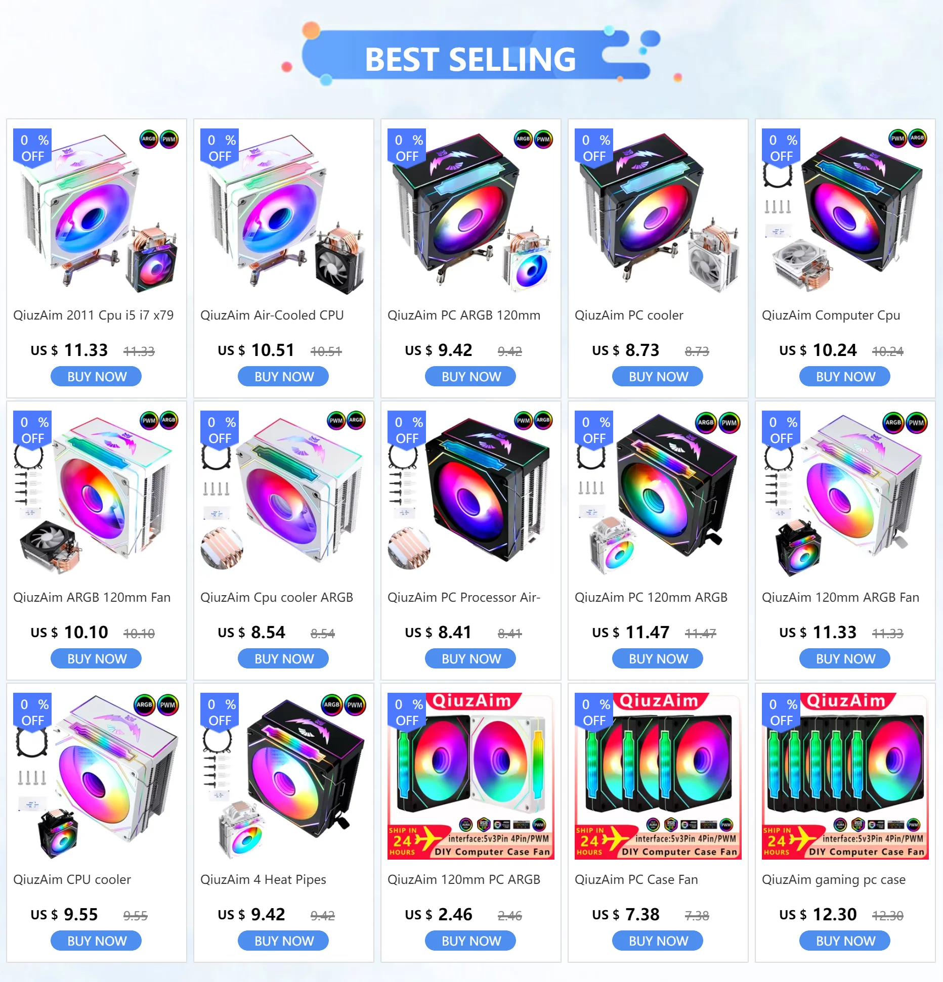 Comprar QiuzAim-enfriador de Cpu ARGB, ventilador de 120mm, 4 pines/PWM, 4 ventiladores de calor, PC x79 x99, procesador refrigerado por aire, instalación LGA2011 2066 AMD AM4
