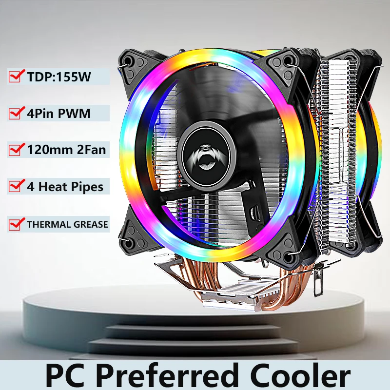 Comprar QIUzAim-enfriador de CPU para PC, torre de radiador de 120mm, 2 ventiladores, 4 tubos de calor, instalación LGA2011 x79 x99 2066 AMD115x 1200 1700 i5 i7 E5