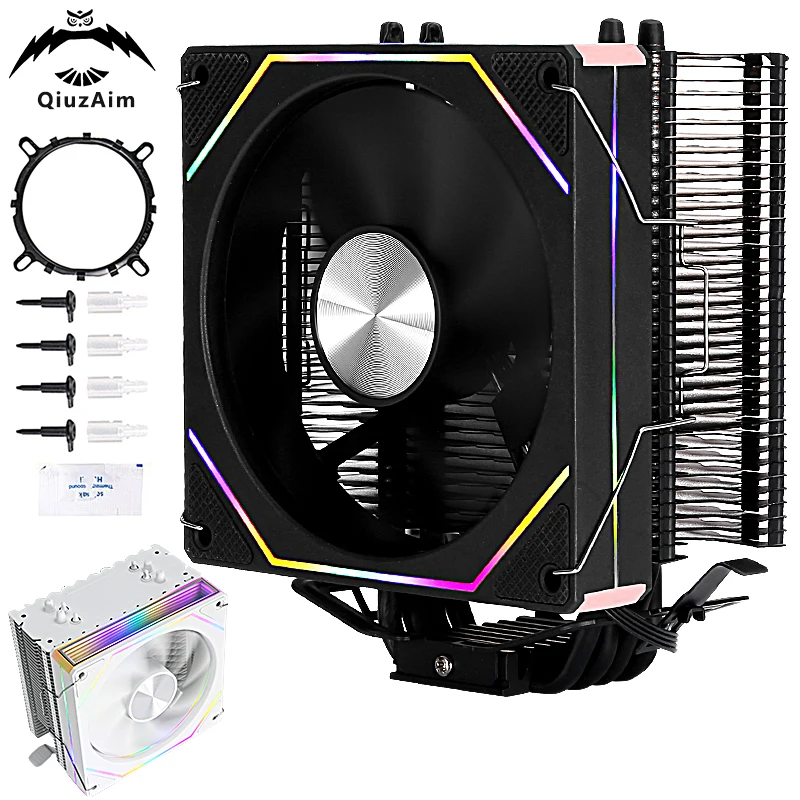 Comprar QiuzAim-enfriador de cpu para pc, ventilador de 120mm, procesador refrigerado por aire de 4 pines/pwm, instalación de 4 tubos de calor LGA775 115x1200 1700 1366 AMD am3 am4 am5