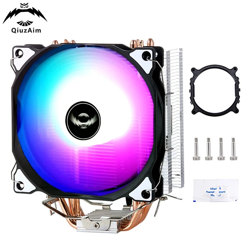 Comprar QiuzAim-enfriador de CPU, ventilador de 120mm, 4 tubos de calor, instalación PWM, LGA2011 x79 x99 e5 2099 AMD AM3 AM4 am5 para hacer su computadora más suave