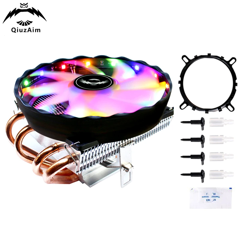 Comprar QiuzAim-enfriador de ordenador, ventilador de 120mm, PWM, PC, enfriador de aire, 4 tubos de calor, procesador de CPU, instalación LGA115x 1200 1700 1366 AMD AM3 AM4 AM5
