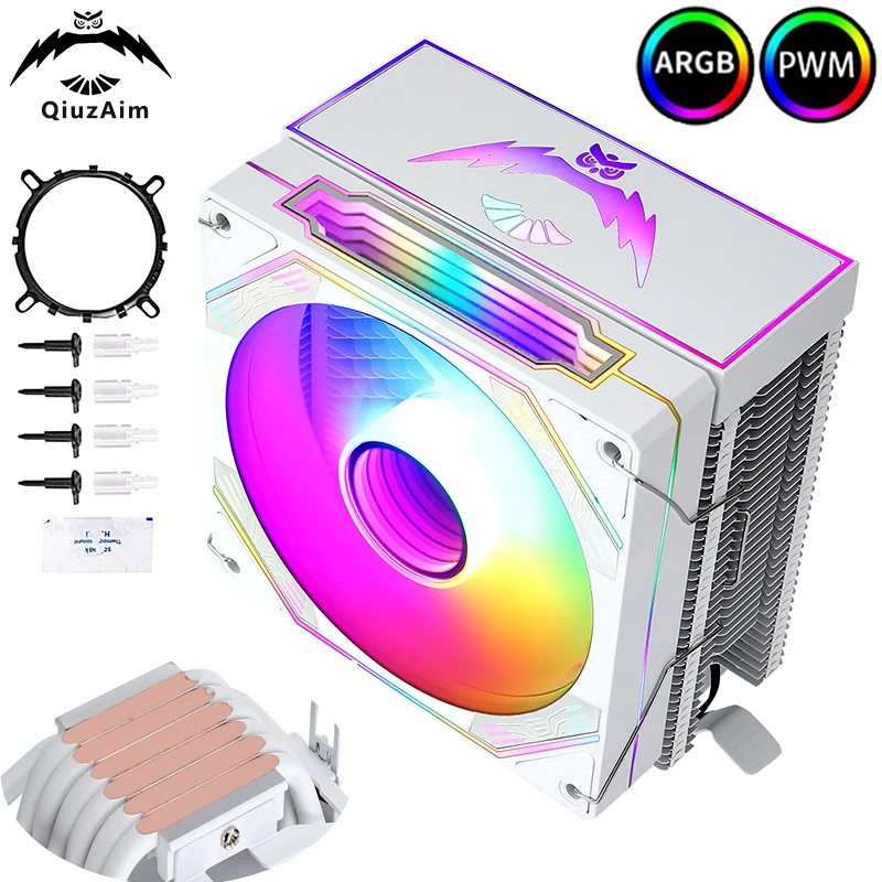 Comprar QiuzAim negro/blanco ARGB 120mm ventilador 4pin/PWM silencioso CPU enfriador refrigerado por aire 6 tubos de calor instalación del radiador LGA115x 1200 1700 1366 AMD