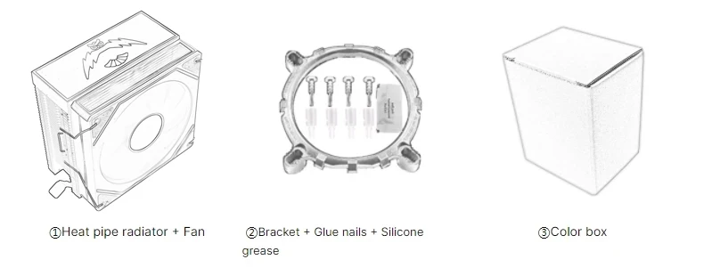 Package: Color Box (CPU cooler*1, fixing bracket*1 kit, silicone grease*1 )
