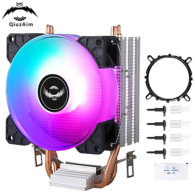 Comprar QiuzAim PC tipo torre radiador 90mm refrigeración por aire 2 tubos de calor Host CPU ventilador PWM instalación LGA775 115x 1200 1700 1366 am4 AM5 amd