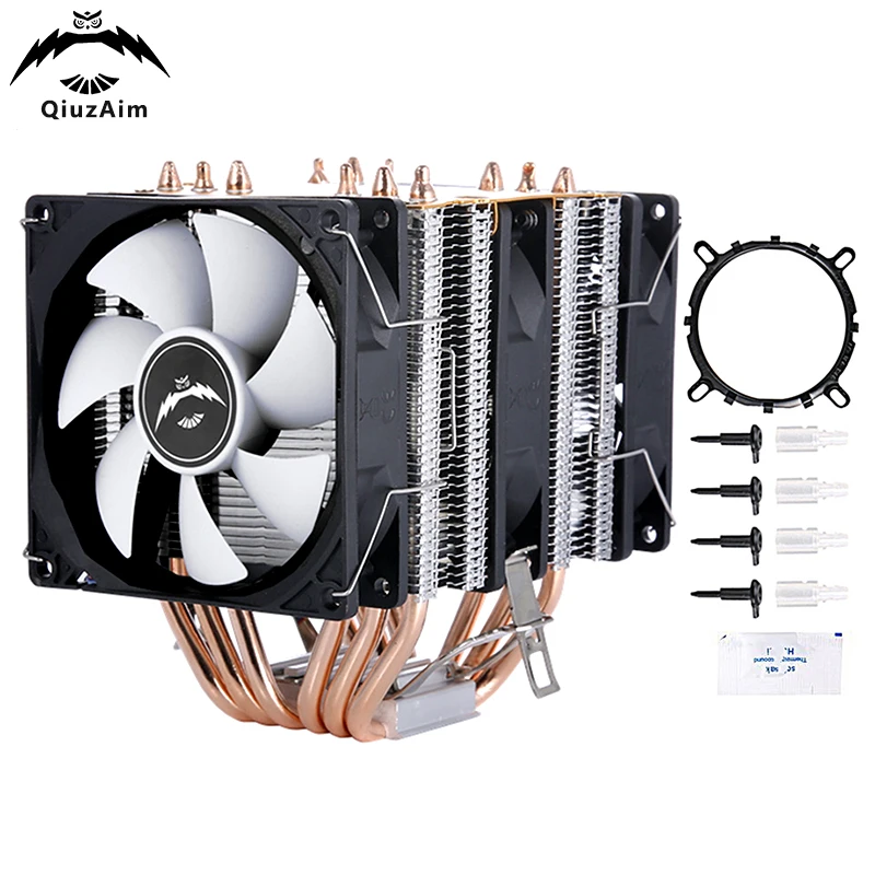 Comprar QiuzAim procesador de pc enfriador de aire 6 tubos de calor Torres gemelas ventilador enfriador de CPU 90mm instalación LGA115x 1700 1200 1366 AMD AM3 AM4 AM5