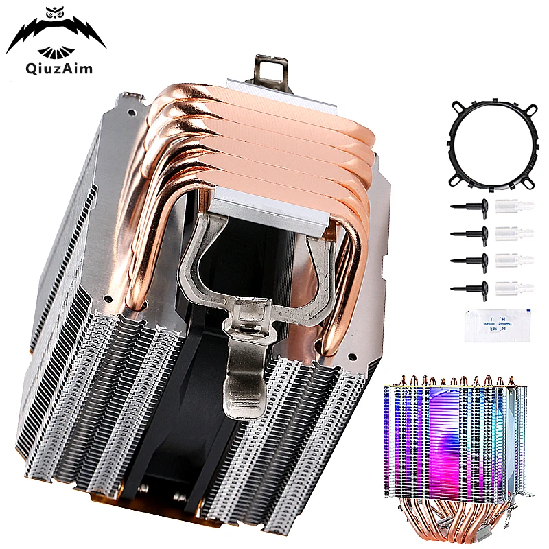 Comprar QiuzAim-ventilador enfriador de Cpu, torres gemelas, 6 tubos de calor, eficiente, refrigerado por aire, 90mm, 4 pinesPWM, instalación LGA115x 1200 1700 18xx 1366 AMD am3 am4