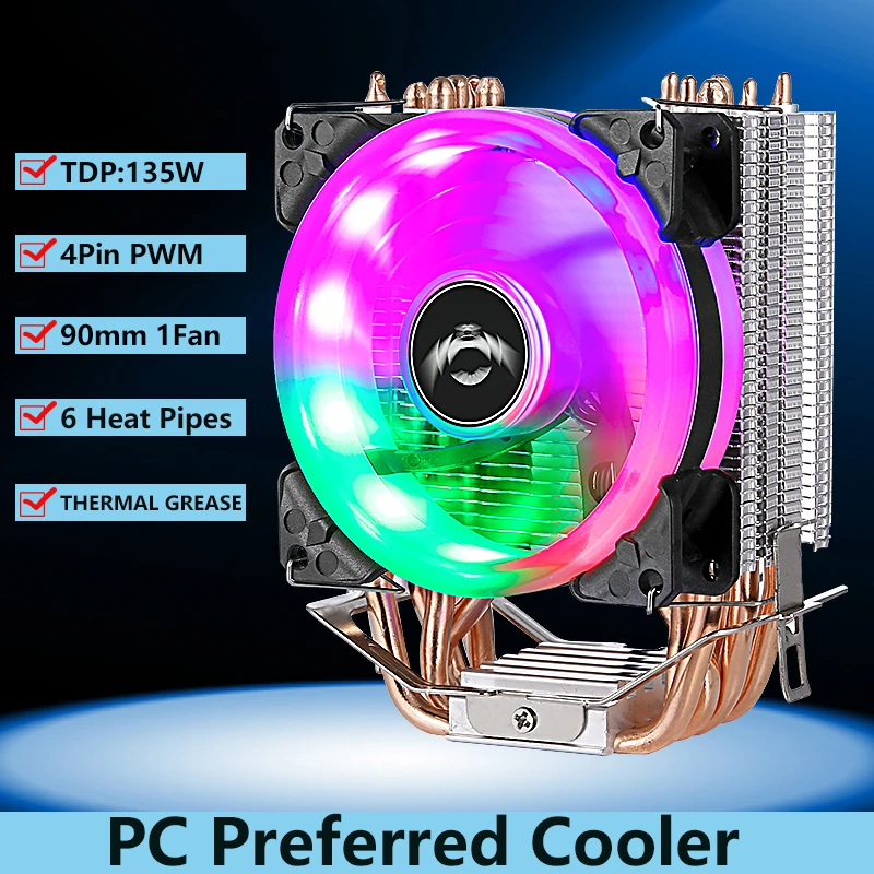 Comprar QIUzAim ventilador PWM de refrigeración para PC, radiador de torre, 6 tubos de calor, procesador de CPU, instalación LGA775 115x1200 1700 1366 i3 i5 2011x79x99 AMD