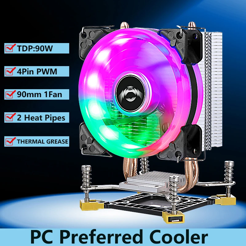 Comprar QIUzAim-ventilador de refrigeración para torre de CPU, enfriador eficiente, 2 tubos de calor, instalación LGA775 115x1200 1700 1356 i3 i5, refrigerado por aire