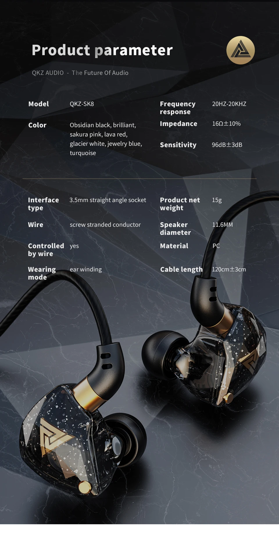 QKZ SK8 Auriculares deportivos de música con micrófono Jack de 3,5mm Auriculares de alta fidelidad con cable Auriculares para correr con cancelación de ruido de graves para Xiaomi Samsung