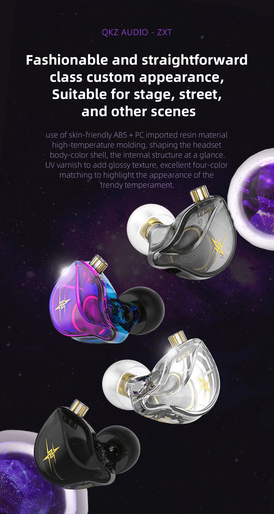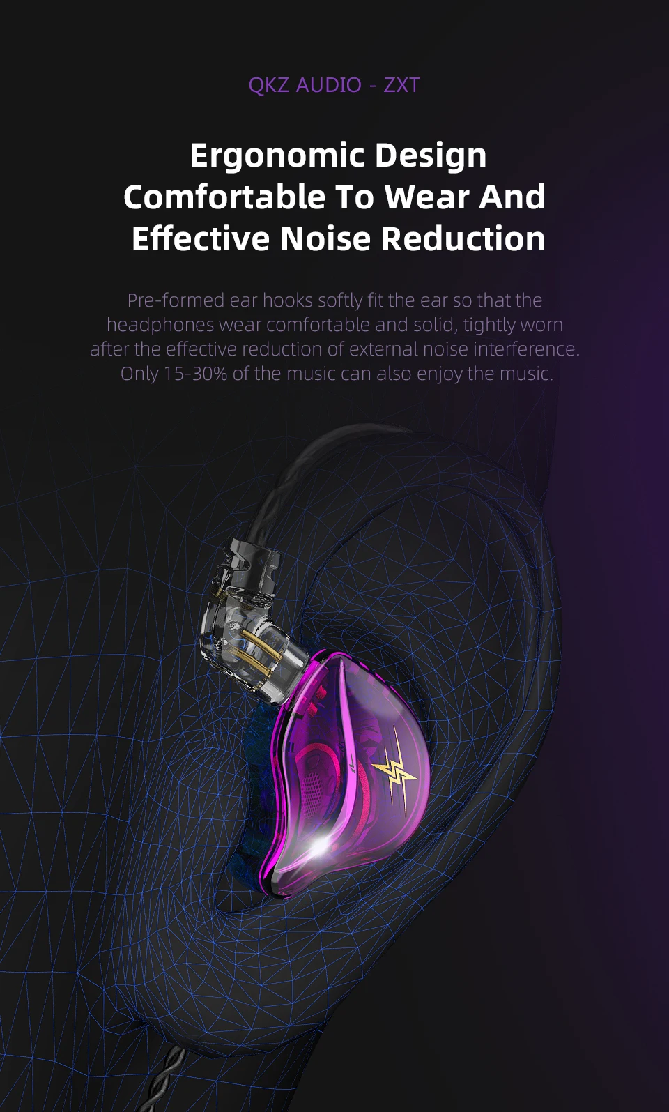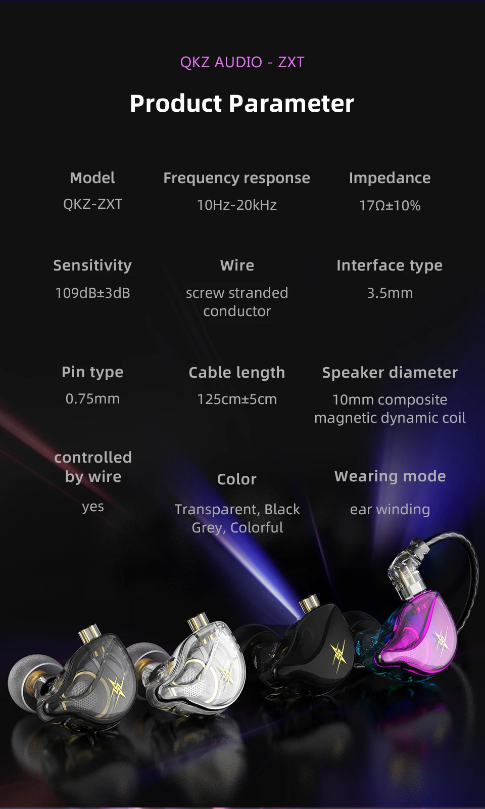 Marca: QKZ Modelo de producto: QKZ ZXT Tipo de conector: 3,5mm Desgaste: cuerda de oreja Earphone Topography: Controladores dinámicos Monitores Respuesta de frecuencia: 10Hz-20000Hz Tipo de conector: 2 pines Impedencia: 17Ω Sensibilidad: 109dB Longitud del cable: 1,2 M