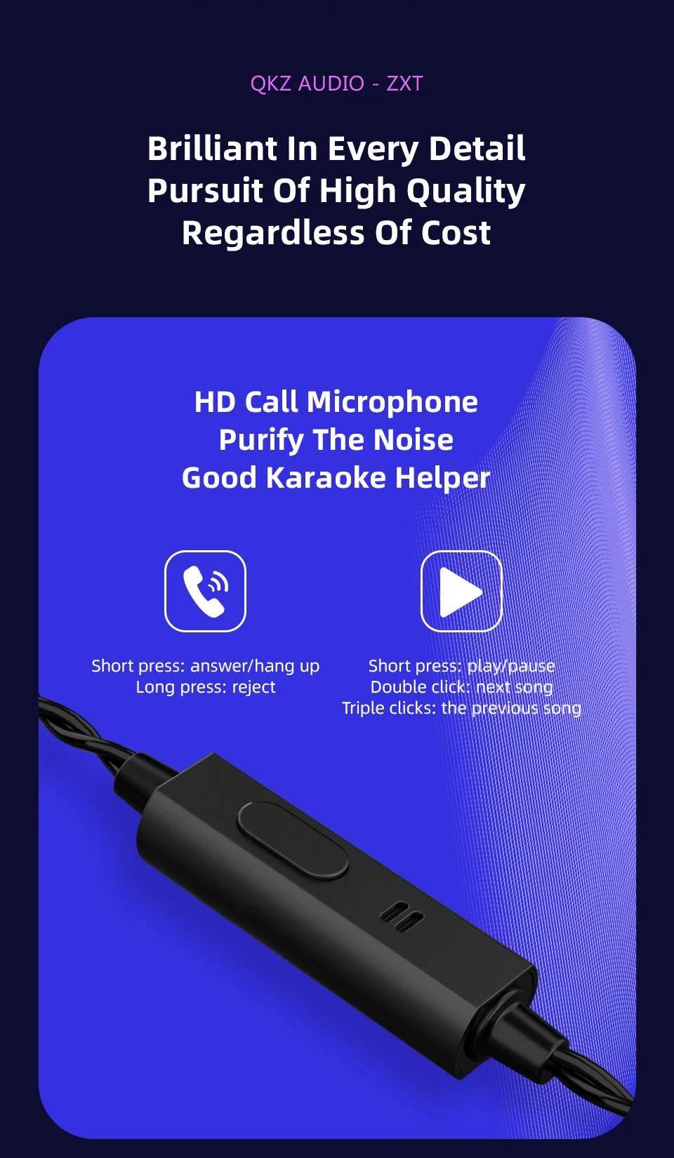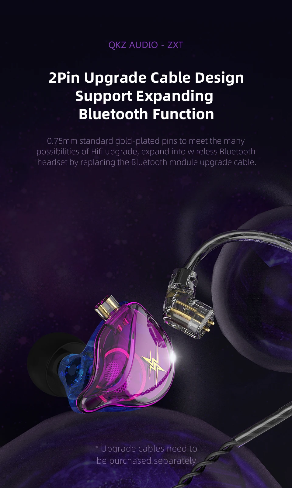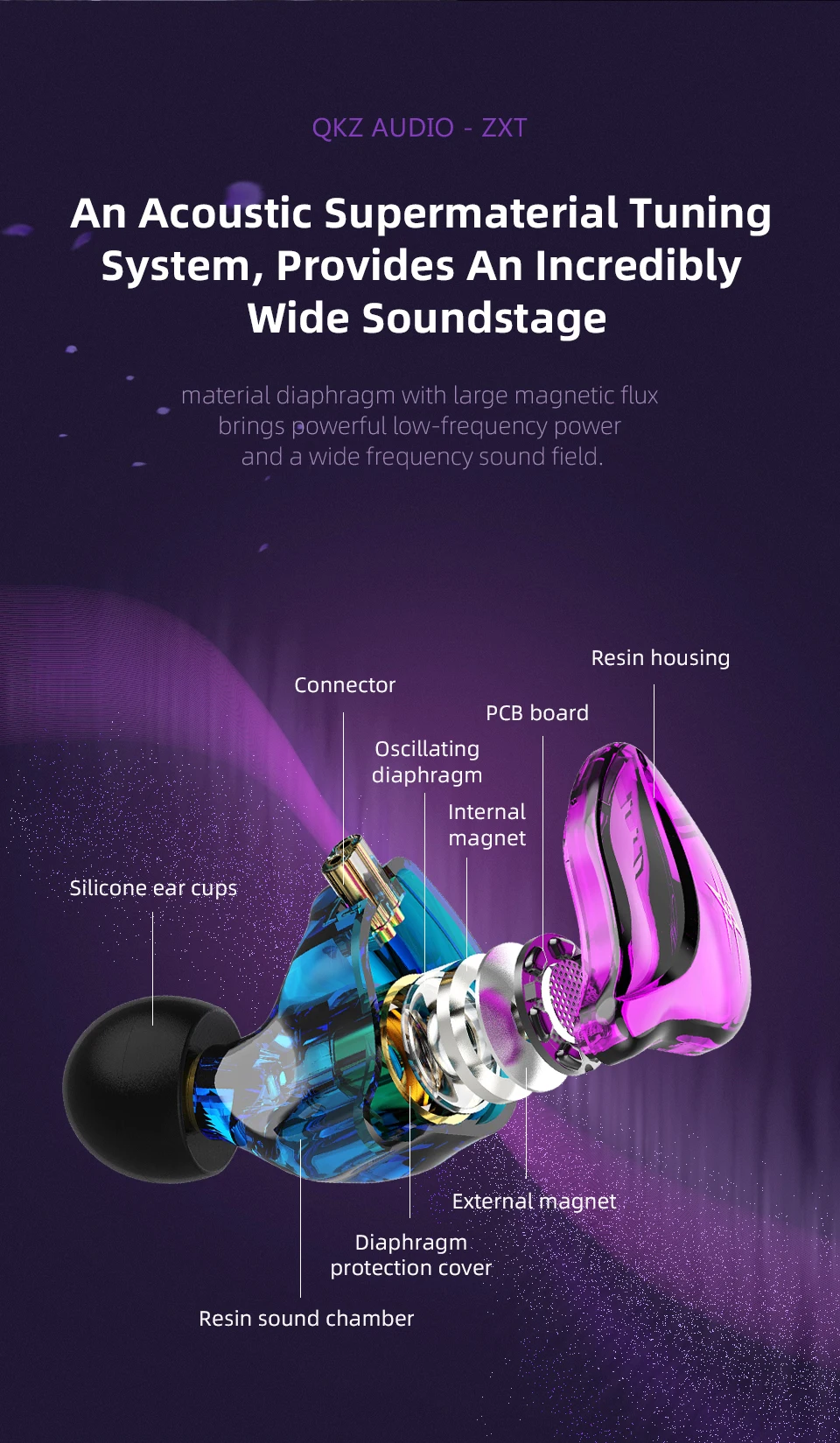 Marca: QKZ Modelo de producto: QKZ ZXT Tipo de conector: 3,5mm Desgaste: cuerda de oreja Earphone Topography: Controladores dinámicos Monitores Respuesta de frecuencia: 10Hz-20000Hz Tipo de conector: 2 pines Impedencia: 17Ω Sensibilidad: 109dB Longitud del cable: 1,2 M