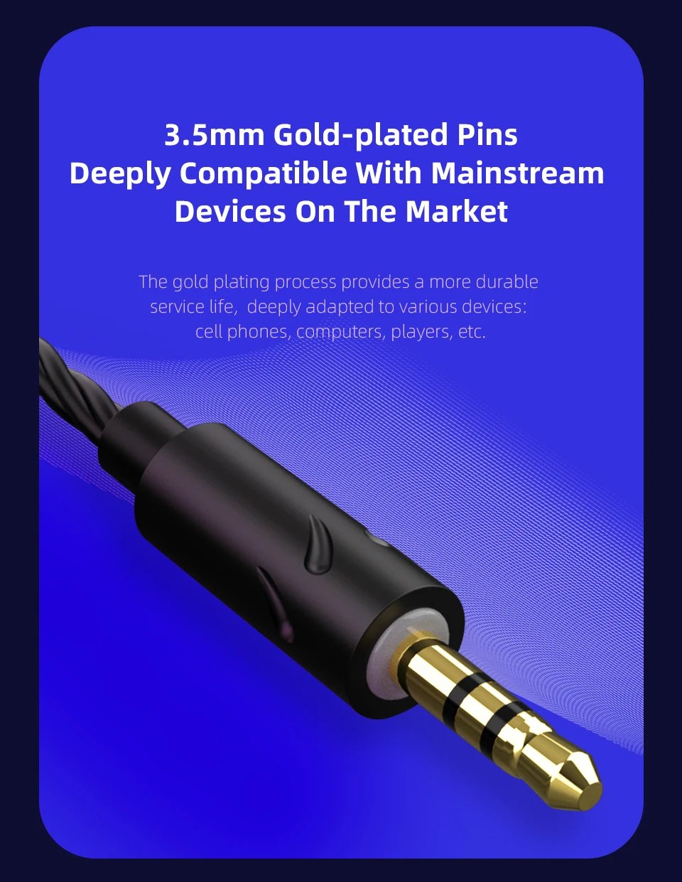 -Aspecto elegante, graves excepcionales, rendimiento de alto costo, apariencia elegante + combinación de colores -Cómodo y apretado -Alambre espiral de alta resistencia, fiable y duradero, evitando que se enrede. -Cable de núcleo de cobre sin oxígeno, calidad de sonido altamente restaurada, original -Cable desmontable -Presentación de sonido, reducción pasiva de ruido -Alta resolución, liberación de doble potencia -Campo de sonido HD que interpreta el poder de la música.